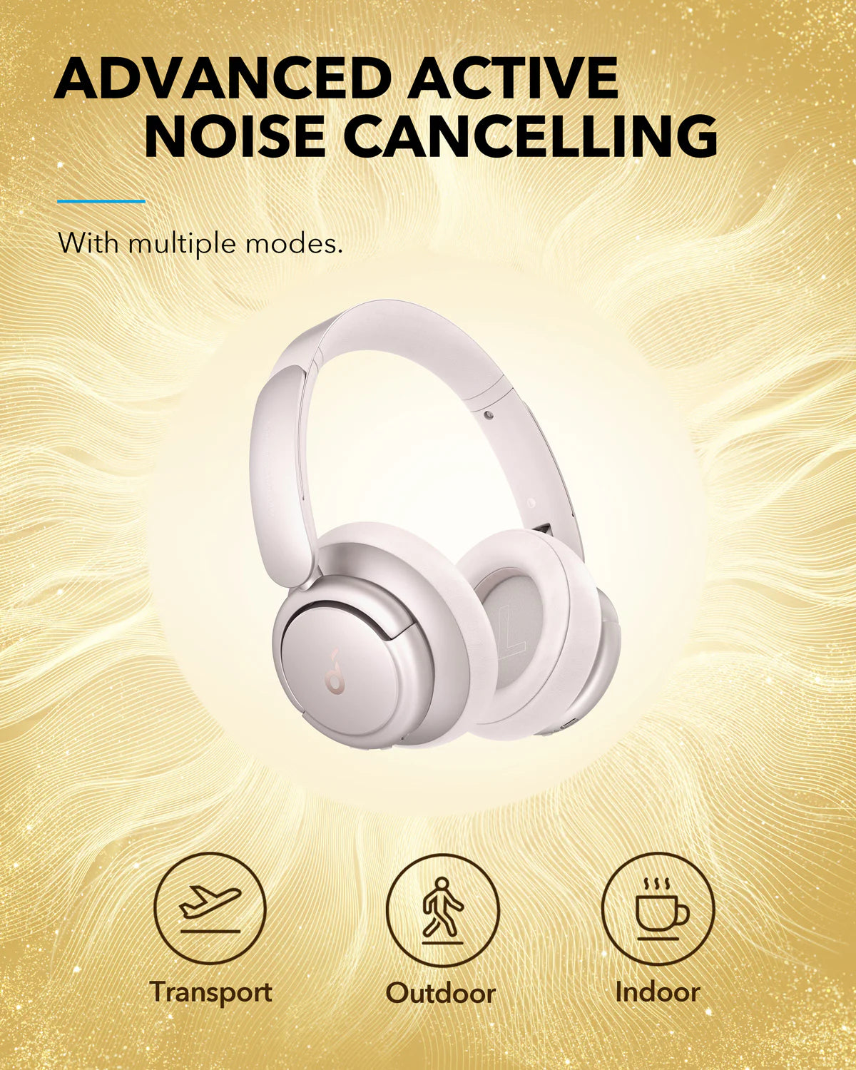 - Multi-Mode Noise Cancelling: 2 microphones on each earcup detect and filter out distracting noises in your vicinity. Switch between Transport, Outdoor, and Indoor modes for a tailored noise cancelling experience.