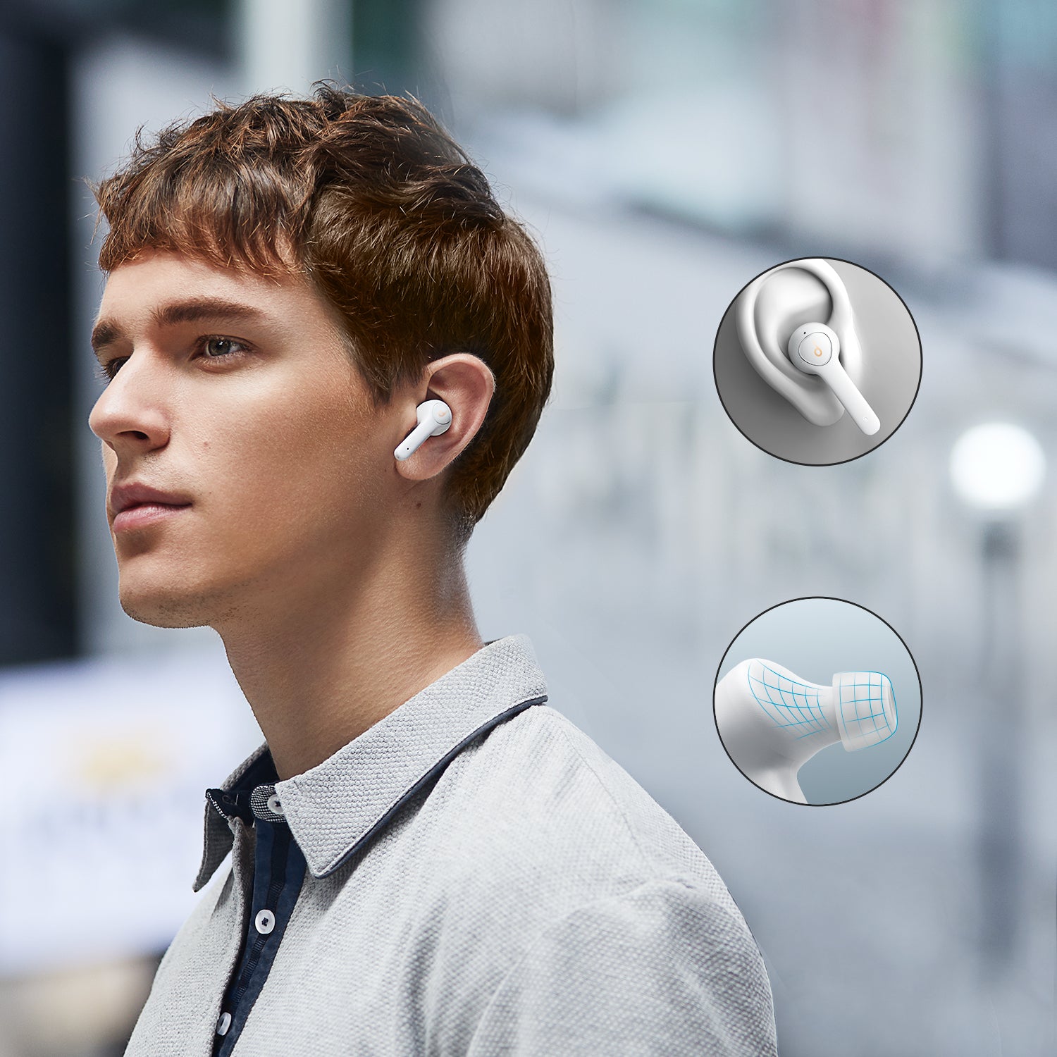 - Crystal-Clear Calls: Each earbud has two microphones with beamforming noise reduction and cVc 8.0 technology for superior vocal enhancement and background-noise suppression. This ensures your voice is heard clearly on the other end—without interference.