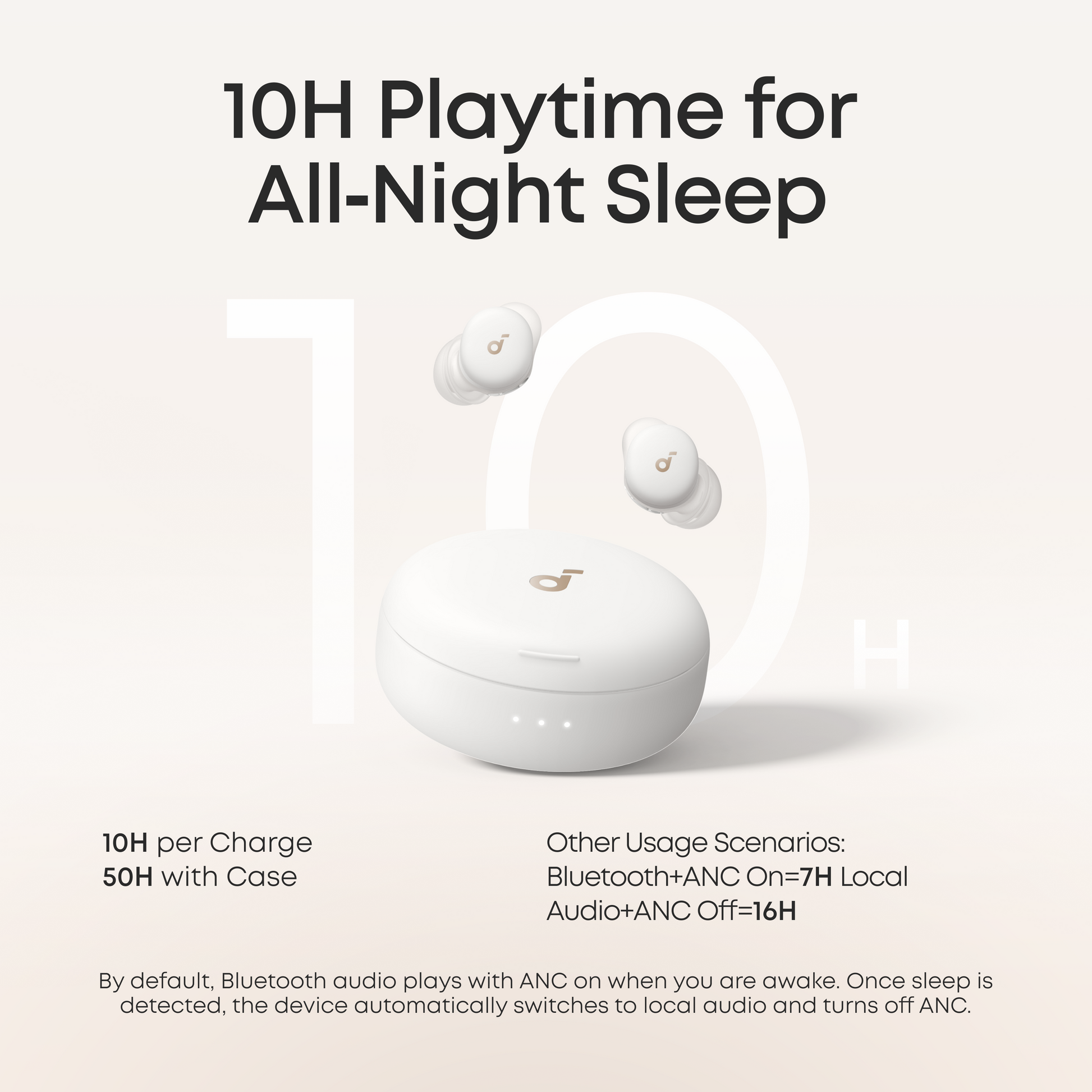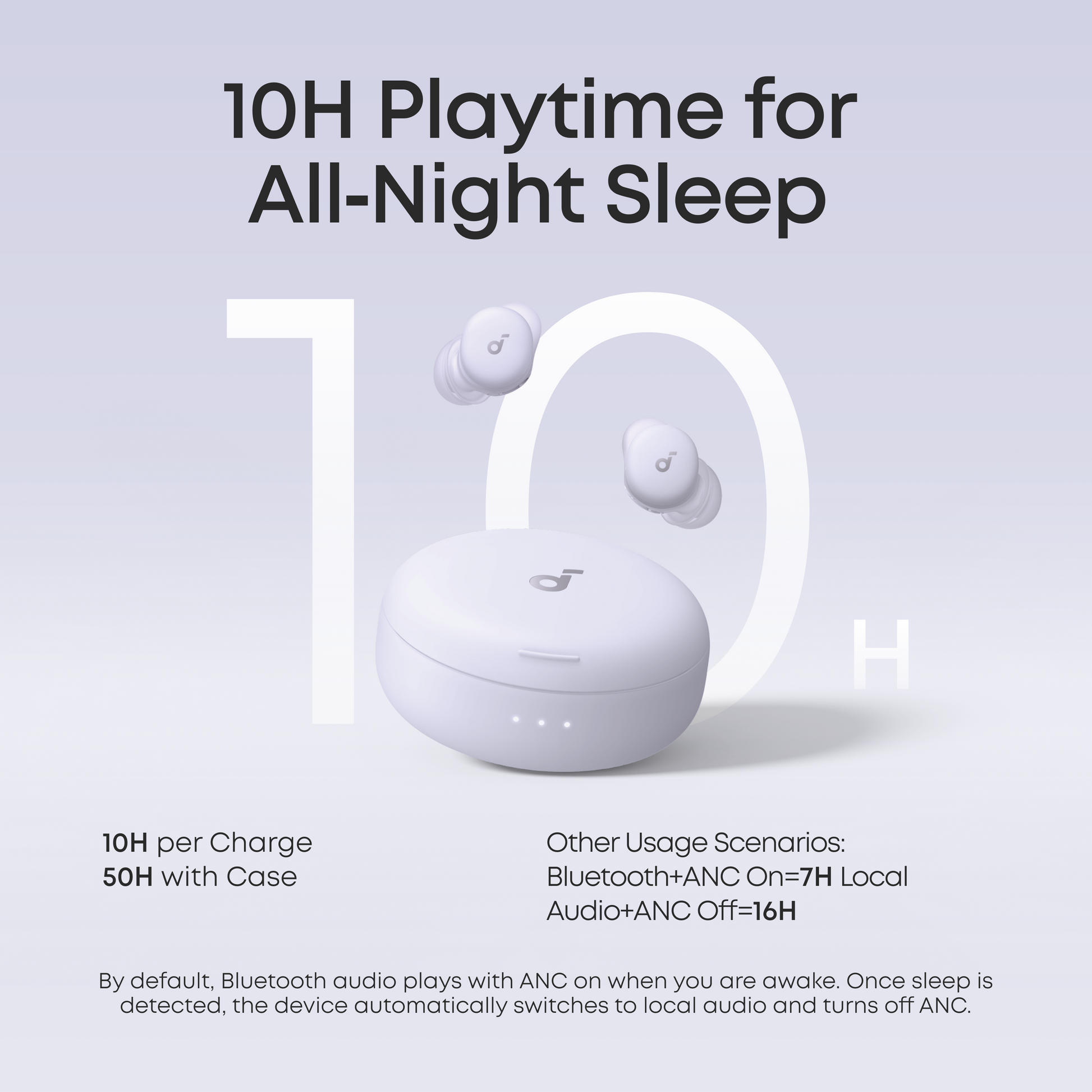 10 Hours of Playtime by Default: Provides 10 hours of playtime per charge and up to 50 hours with the charging case. Flexible playback options provide 7 to 16 hours of playback, enabling convenient use overnight or during naps.