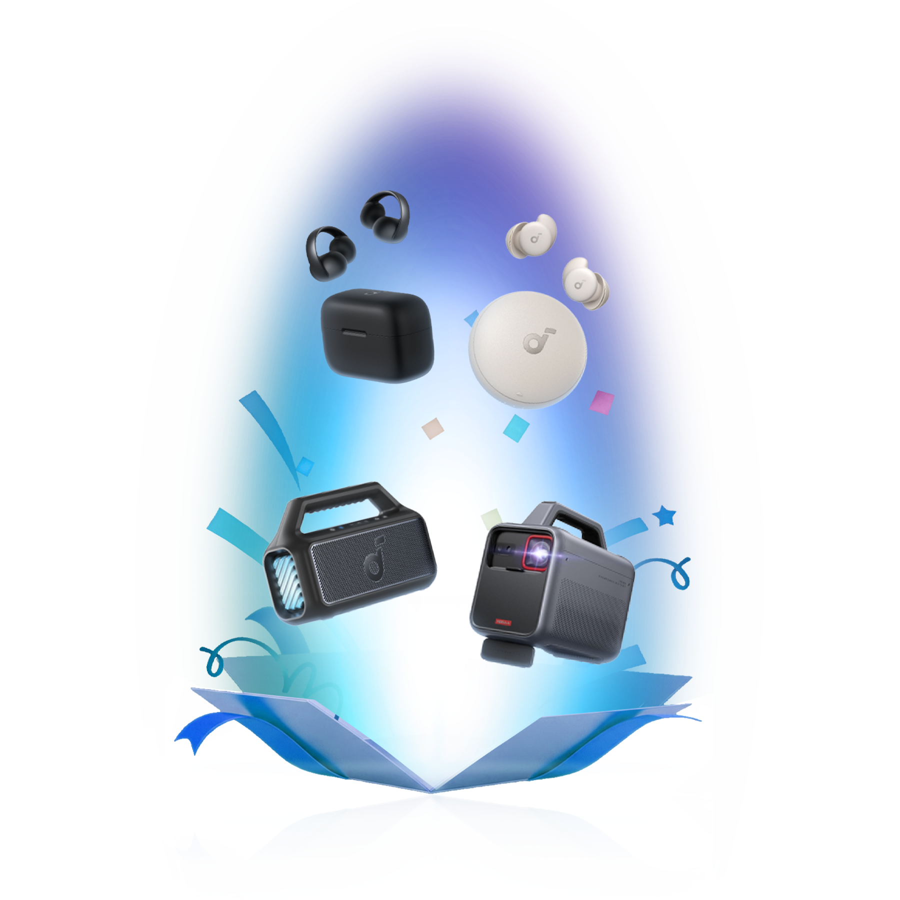 - Mystery box products include: AeroClip Open-Ear Earbuds,Sleep A20 Sleep Earbuds,Boom 2 Bluetooth Speaker,Mars 3 Outdoor Projector